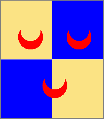 Ecartelé d'or et d'azur à trois croissants de gueules brochant sur