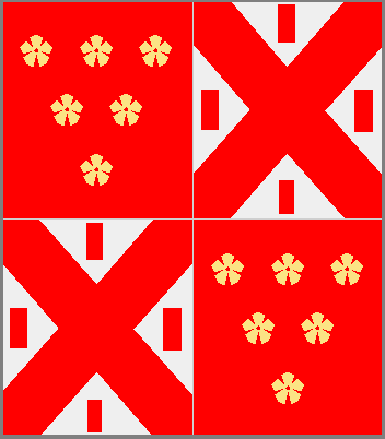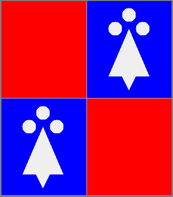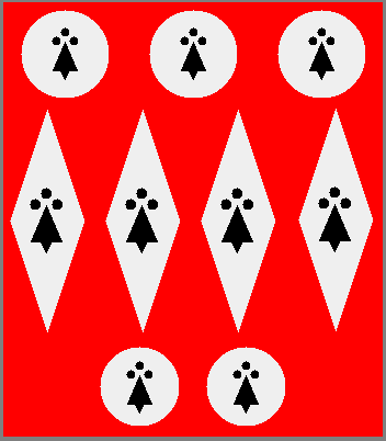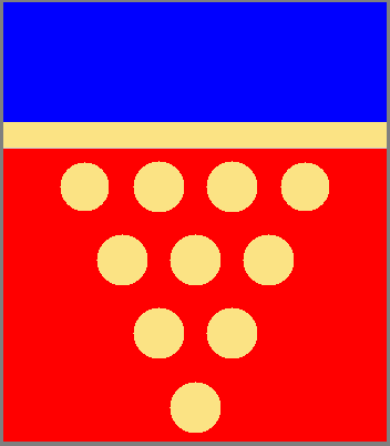 (De gueules à dix billettes d'argent posées 4,3,2 et 1 (gueules (10 (billette argent))) |