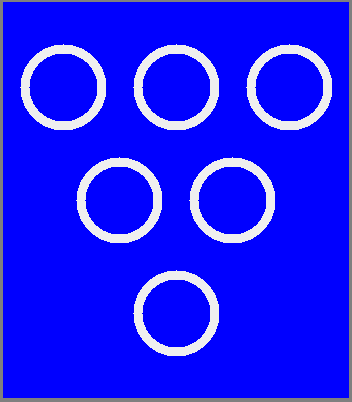 D'azur à six annelets d'argent posés 3, 2 et 1 (azur (6 (annelet argent))) |