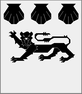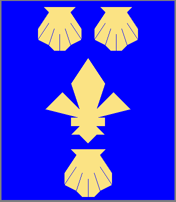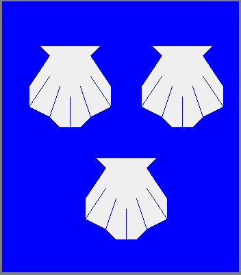D'azur à trois coqilles d'argent (azur (3 (coquille argent))) |