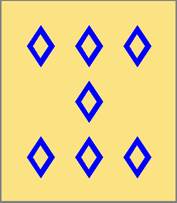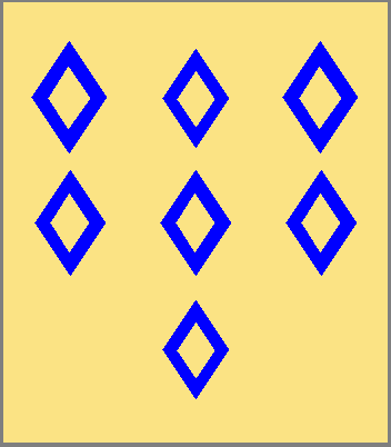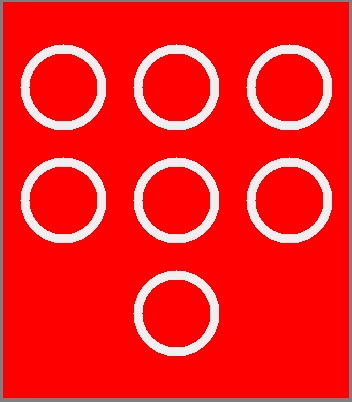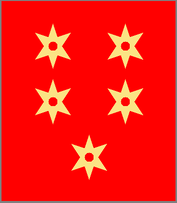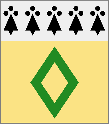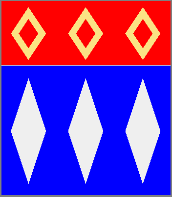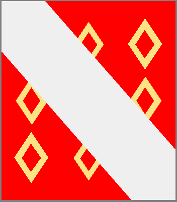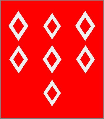 De gueules à sept mâcles d'argent posées 3, 3 et 1 (gueules (7 (macle argent))) |