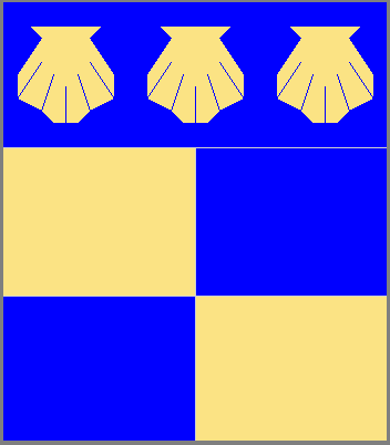 coquilles d'or ((ecartele or azur) (charge (chef azur) (3 enFasce (coquille or)))) |