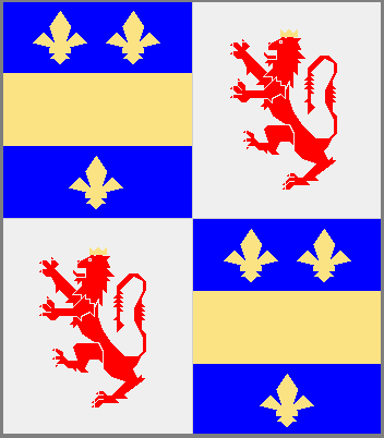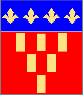 Ecartelé: au 1, d'or semé de fleurs de lys d'azur, au franc-canto de