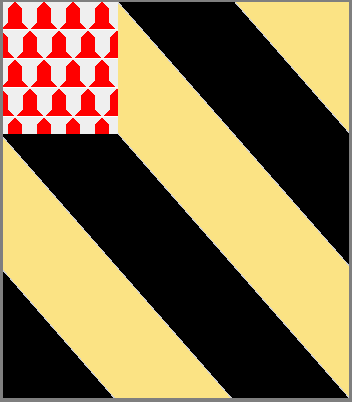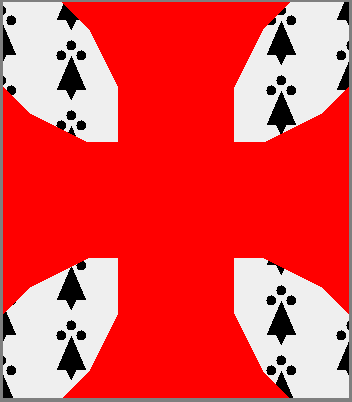 Gironné d'argent et de gueules de huit pièces (coupe (parti (tranche (argent plain) (gueules plain)) (taille (gueules plain) (argent plain))) (parti (taille (argent plain) (gueules plain)) (tranche (gueules plain) (argent plain)))) |