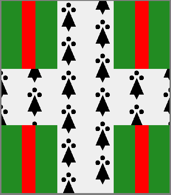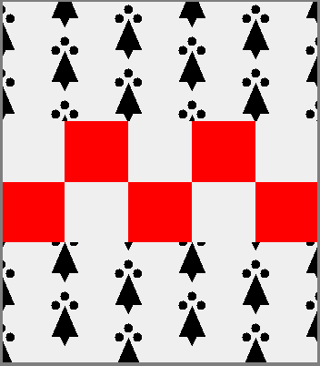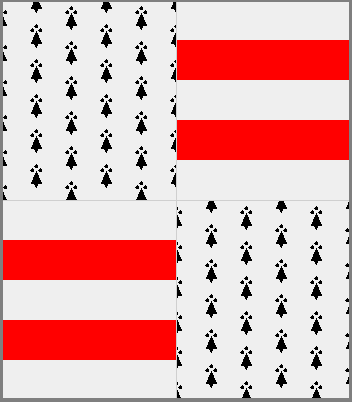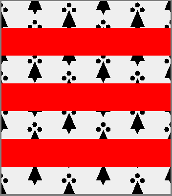 fasces de gueules (ecartele ((1 4) (hermine plain)) ((2 3) (argent (2 (fasce gueules))))) |