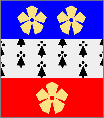 d'hermine ((azur (6 (billette argent))) (chef hermine)) |