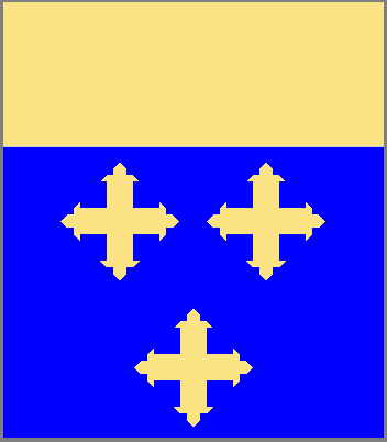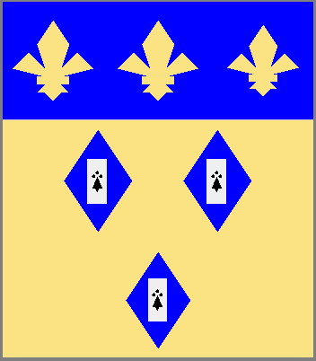 Ecratelé d'or et d'azur; au chef aussi d'zur chargé de trois