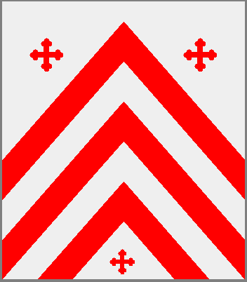 D'argent à trois chevrons de gueules (argent (3 (chevron gueules))) |