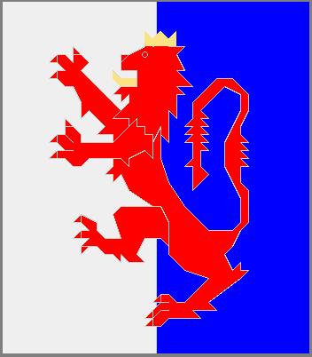 De gueules à un lion d'argent armé, lampassé et couronné d'or; au chef