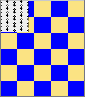 d'argent (ecartele ((1 4) (gueules plain)) ((2 3) (azur (moucheture argent)))) |