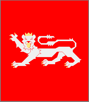De gueules à un lion couronné d'argent (gueules (lion argent (couronne argent))) |