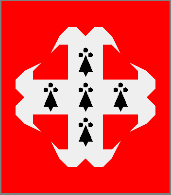Parti d'or et d'hermine, à la croix pattée alésée de gueules