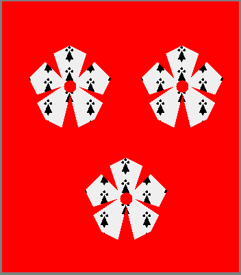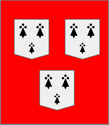 De gueules à trois écussons d'argent chargés chacun de trois mouchetures