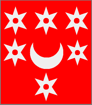 le tout d'argent (gueules (accompagne (croissant argent resserre) (enChef (3 enFasce (molette argent))) (aDextre (molette argent)) (enPointe (molette argent)) (aSenestre (molette argent)))) |