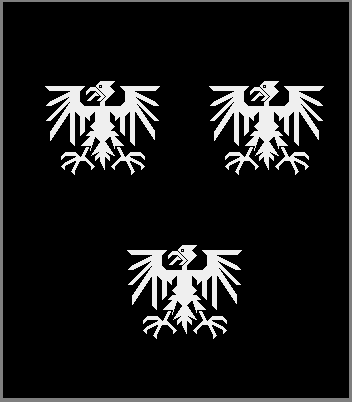 De sable à trois aiglettes d'argent (sable (3 (aigle argent))) |