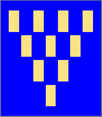 D'azur à dix billetes d'or, 4, 3, 2 et 1 (azur (10 (billette or))) |