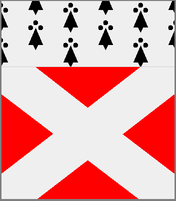 De gueules au sautoir d'argent; au chef cousu d'hermine ((gueules (sautoir argent)) (chef hermine)) |