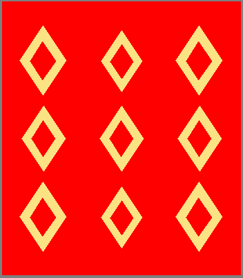 De gueules à neuf mâcle d'or, posées 3, 3 et 3 (gueules (9 (macle or))) |