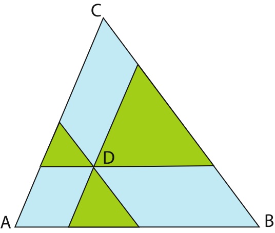 Pour chaque point D où un navire a sombré, une association a tracé une carte où les parallèles aux côtés de ABC passant par D délimitent trois "triangles de recueillement".