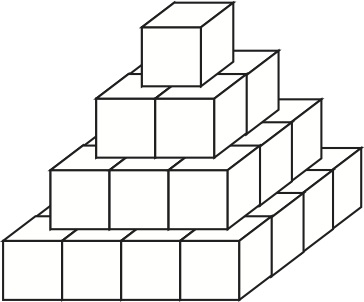 Un promoteur construit une tour pyramidale formée de trente cubes, tous de même taille, disposés comme ci-contre : seize au premier étage, neuf au deuxième, quatre au troisième et un au quatrième.