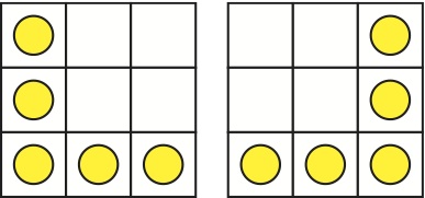 Cinq pièces de monnaie sont placées (position de gauche) sur cinq cases de la grille 3 × 3 ci-dessous.