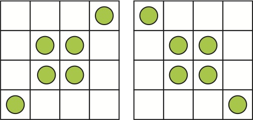 - 2. Même question pour passer de la position de gauche à la position de droite pour les six pièces de la grille 4 × 4 ci-dessous. (8 points)